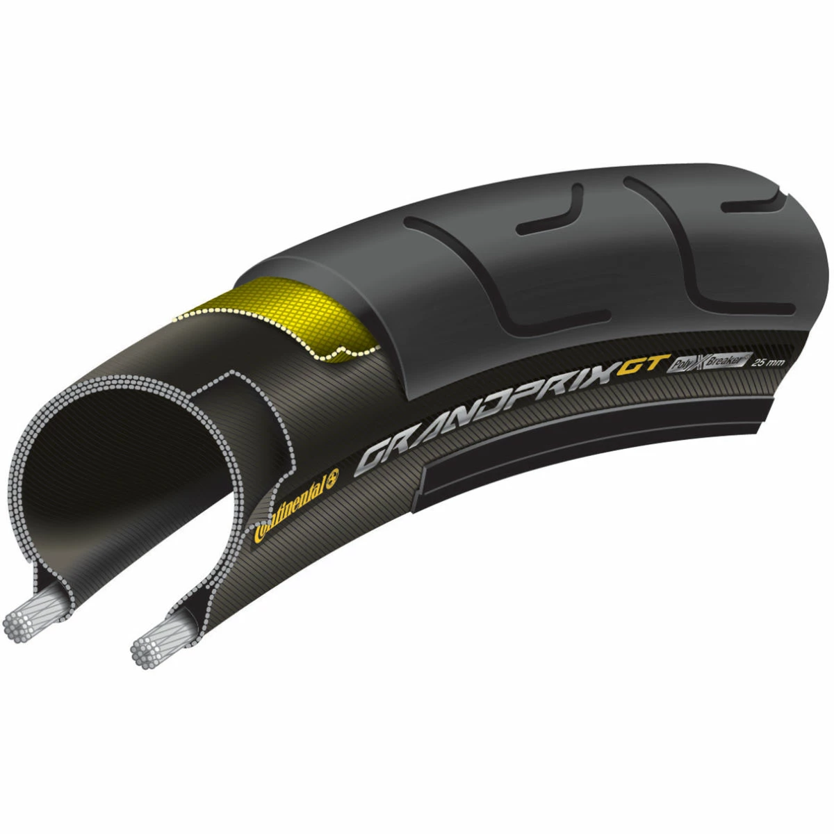 With their PolyX Breaker, Continental bring PKW know-how to the bike tyre arena โ Polyester has been used successfully for years in car tyres and been tried and tested many times. The extremely resistant polyester fibre is woven tightly crosswire making a very high fabric density which not only makes the Breaker more resistant to foreign objects, but is also resistant to punctures. The rolling resistance is not effected either by the PolyX Breaker.