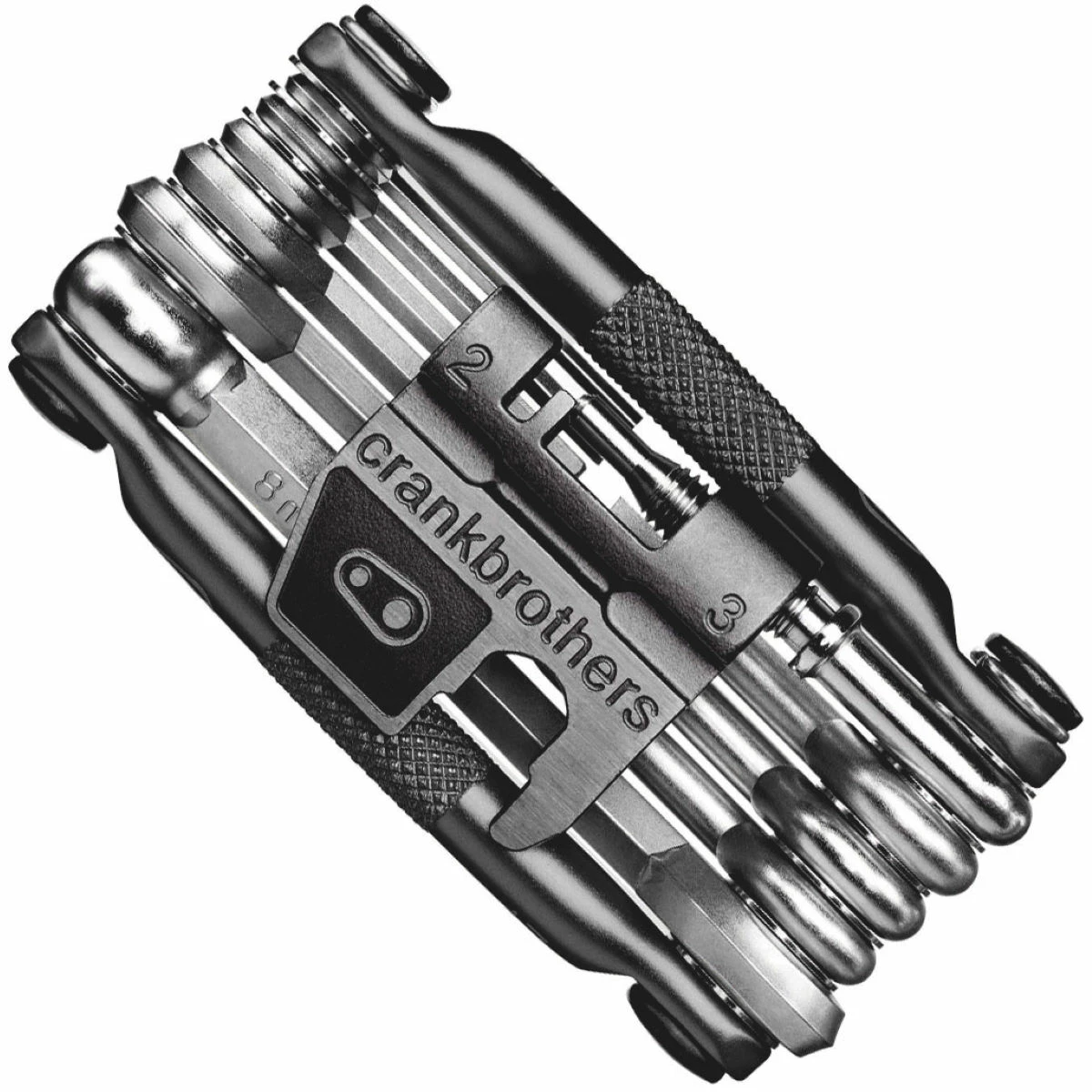 Material: 6051 high tensile Steel/6061-T6 Aluminium construction Selection of 17 tools Tools: Allen Keys / Hex Wrenches: #2, 2.5, 3, 4, 5, 6, 8mm; Screwdrivers: Phillips #2, Flat #2; Torx: T25; Open Wrench: 8mm, 10mm; Spoke Wrench: #0, 1, 2, 3; Chain Tool: 8/9/10-Speed compatible High tensile steel multi-tools feature a precise fit and finish Side grips for a secure handhold even with gloves on Dimensions: 89mm length Lifetime Warranty Weight: 168g