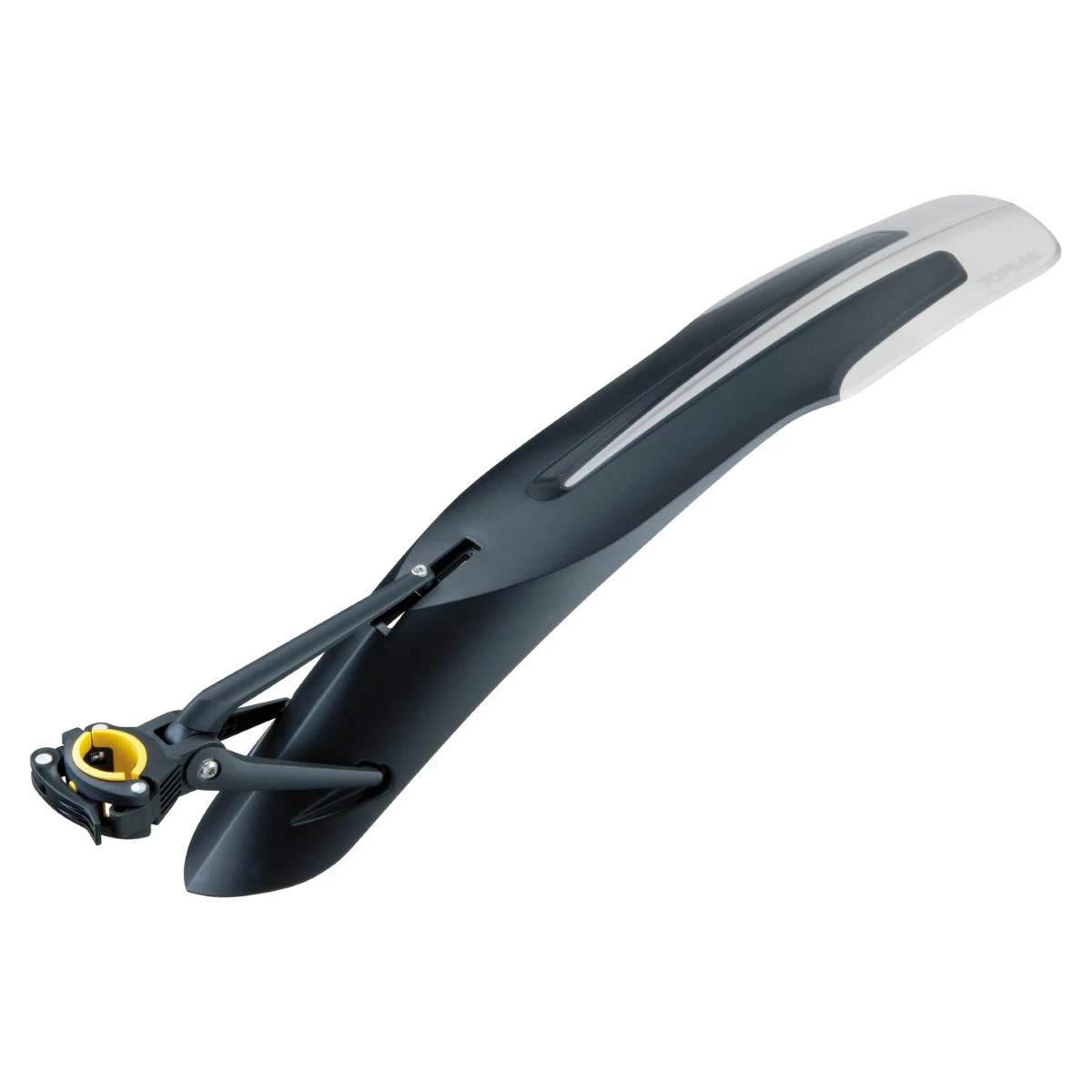 Featuring an adjustable clamp, which also pivots for ultimate versatility; it is compatible with virtually any frame style, geometry and trail conditions. Constructed from a high impact plastic, which is a co-molded flexible material for greater durability and features a highly polished underside to help prevent dirt buildup and aids in cleaning.